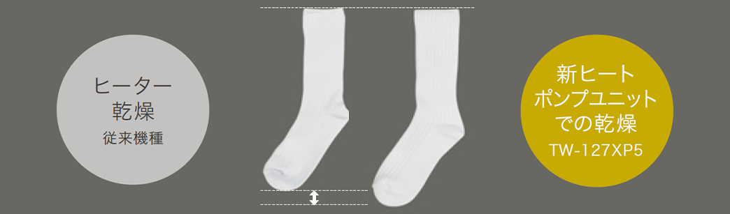 ヒートポンプのやさしい温風で繊維ふっくら、肌ざわりよく仕上がる!