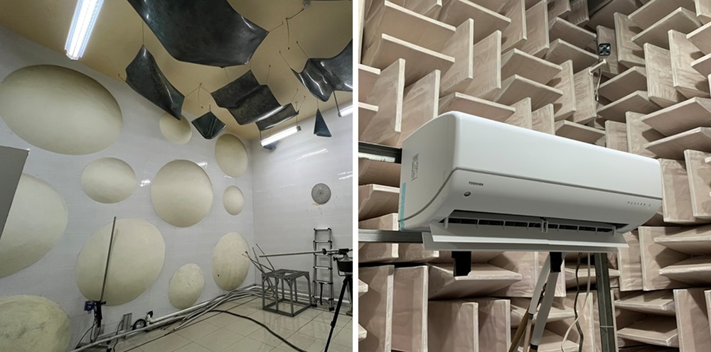 室内機と室外機が運転中に発する騒音をチェックし、一定の基準値クリアを徹底しています。特に室内機は騒音レベルはもちろんのこと、聴感(音色)にも留意し、可能な限り改善を行っています。