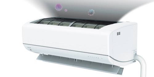 - ※5【試験機関】(一財)北里環境科学センター【試験方法】25㎥試験チャンバー(密閉空間)内に菌(1種類)を浮遊させ、エアコンを空清運転。 経時的にチャンバー(密閉空間)内の浮遊菌を捕集し、菌数を測定【試験結果】自然減衰に比べ73分で99%減少【報告書No.】北生発2022_0069号