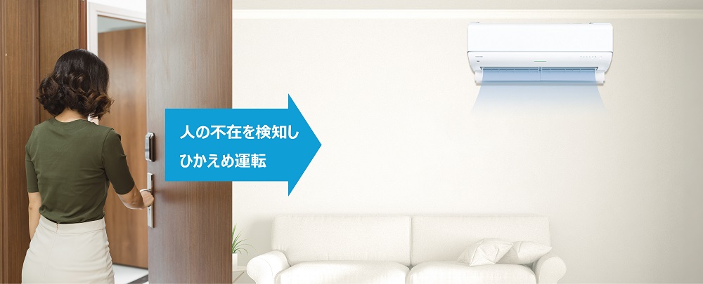 - ※21RAS-V402DRにおいて当社独自の条件により評価。冷房:当社環境試験室(11畳)にて、人がいる時といない時の比較。外気温35℃、設定温度「24℃」、風量「自動」にて、不在時間が2時間経過後の安定時1時間の消費電力量の比較。人がいる時262Wh、人がいない時187Wh。暖房:当社環境試験室(11畳)にて、人がいる時といない時の比較。外気温7℃、設定温度「20℃」、風量「自動」にて、不在時間が2時間経過後の安定時1時間の消費電力量の比較。人がいる時510Wh、人がいない時320Wh。(エアコンの設置環境、ご使用条件により効果は異なります)