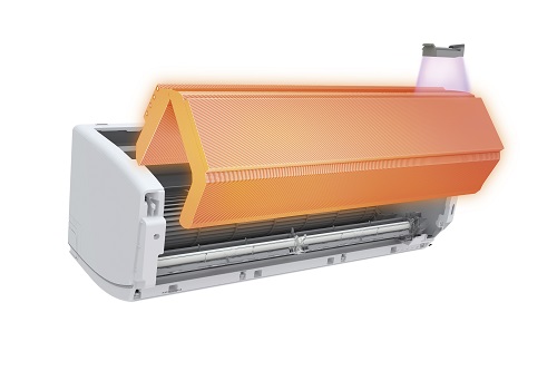 - ※1【試験機関】(一財)北里環境科学センター【試験方法】25㎥試験チャンバー(密閉空間)内に菌(1種類)を浮遊させ、エアコンの空清運転(UVなし)を90分間実施。25㎥試験チャンバー(密閉空間)内を浄化させ、エアコンの空清運転によって熱交換器に捕集した細菌の数を測定した後に、エアコンの空清運転(UVあり)を240分実施し、熱交換器に捕集した細菌の数を測定【試験結果】エアコンの空清運転(UVあり)実施前に比べ99%減少【報告書No.】北生発 2022_0225号