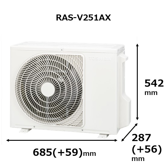 RAS-V221X~RAS-V401X:高さ250mm × 幅795mm ×奥行230mm