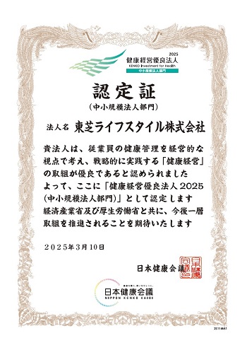 東芝ライフスタイル株式会社は、従業員の健康管理を経営的な視点で考え、戦略的に取り組んでいる企業として、経済産業省および日本健康会議より「健康経営優良法人2025(中小規模部門)」に認定されました。2022年度から4年連続の認定取得となります。