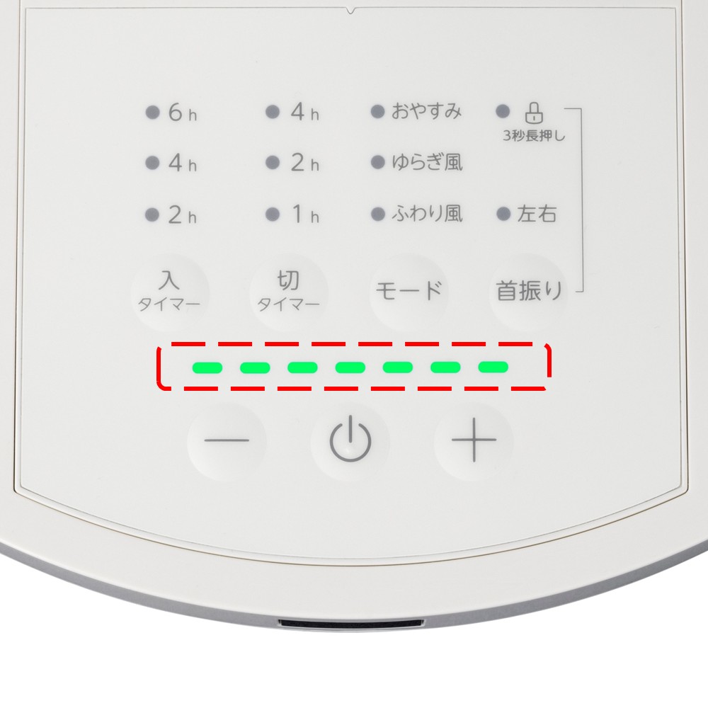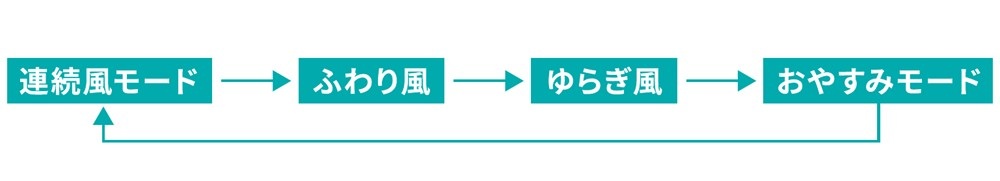 | ランダム | ふわり風 3段(風量1~3自動切換)・ゆらぎ風 7段(風量1~7自動切換) | おやすみ | 7段 |