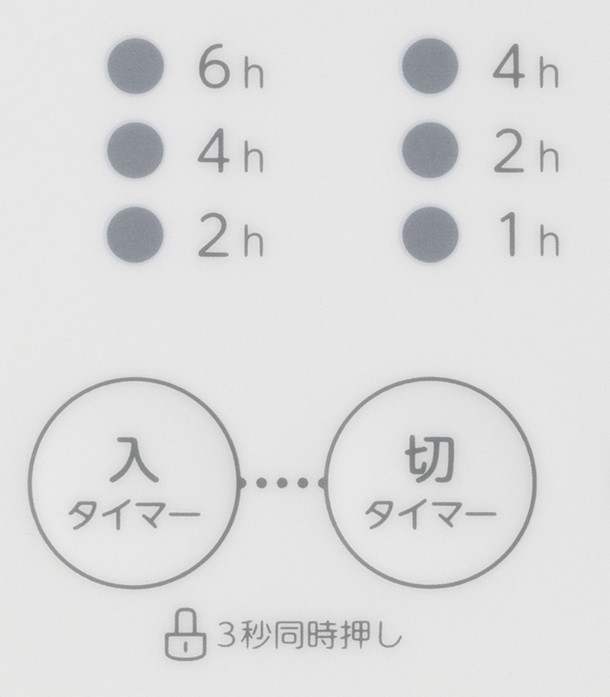 3種類のタイマー(入タイマー、切タイマー、ツインタイマー(切・入タイマーの併用))を搭載。