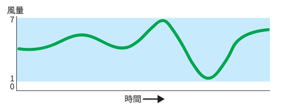 風量1~7の間でダイナミックに変化し、自然の風のリズムをつくり出す心地よい風を送ります。
