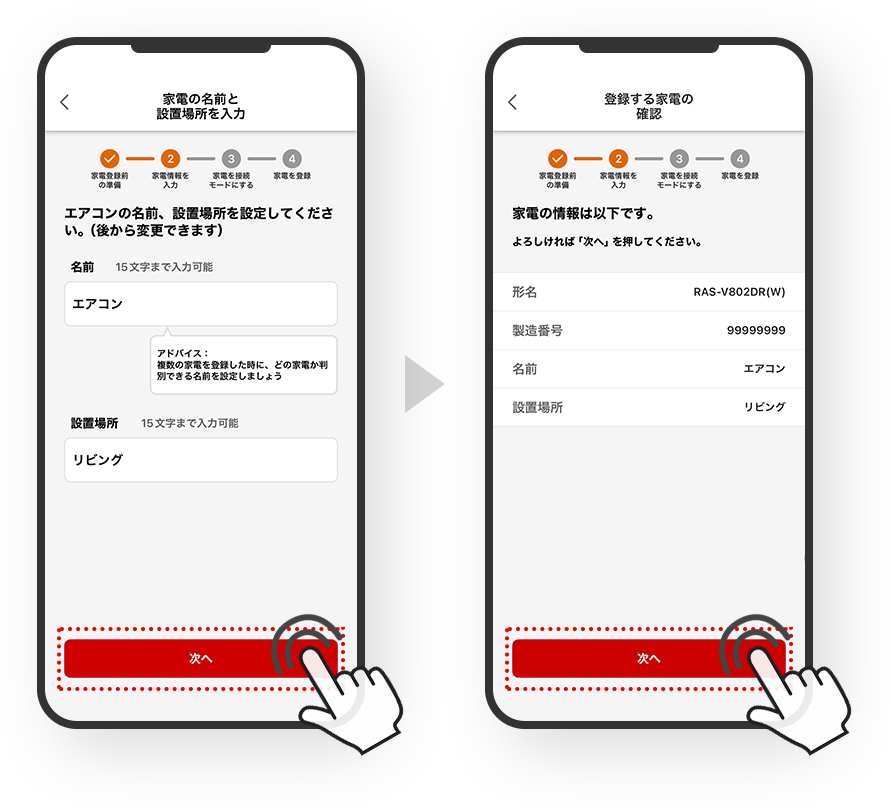 ※入力した「名前」は、アプリのホーム画面(家電コントロール)に表示されます。