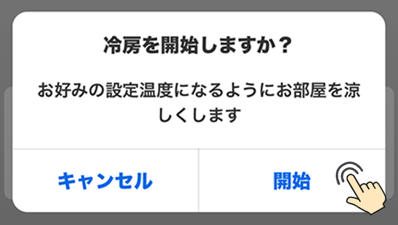 - スマートフォンで操作後、当社のサーバーとエアコンが24時間通信できない状態が続くと、自動でエアコンが停止します。ただし、スマートフォンで操作後、さらにリモコンで操作した場合は通信ができなくても停止しません。