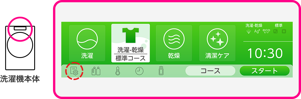 以下からお使いの機種を選んで操作し、洗濯機を接続モードにします。