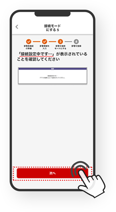 - 4接続が開始され、「接続完了しました」の画面になったら「次へ」をタップ