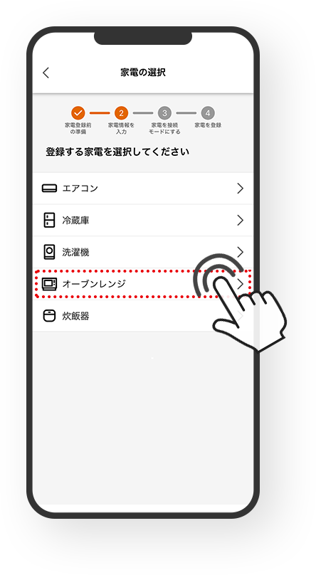 IoLIFE対応機種であることが確認できたら、以下の手順にしたがってオーブンレンジを登録してください。
