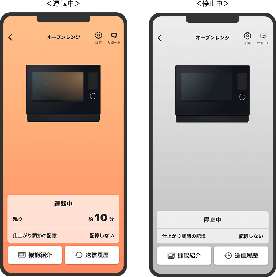 送信したレシピを見ることができ、加熱情報を送信することができます。