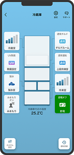 ご家庭にあわせた省エネ運転の設定や、扉開閉回数をグラフ化してみることができます。