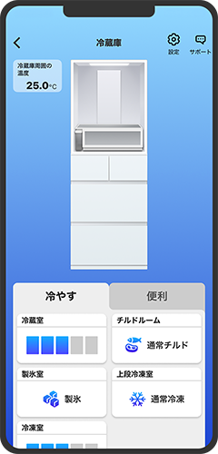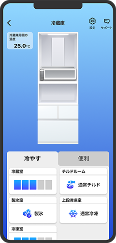 冷蔵室・冷凍室の部屋を用途に合わせて温度設定などを変更できます。
