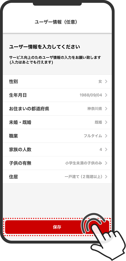 (入力はあとからでも行えます)ご入力いただき「保存」をタップ