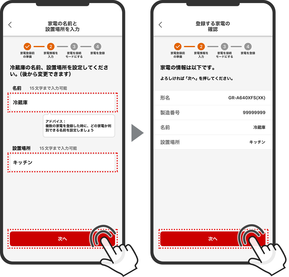※複数の冷蔵庫をアプリで使用する場合は、判別しやすい「名前」にしてください。