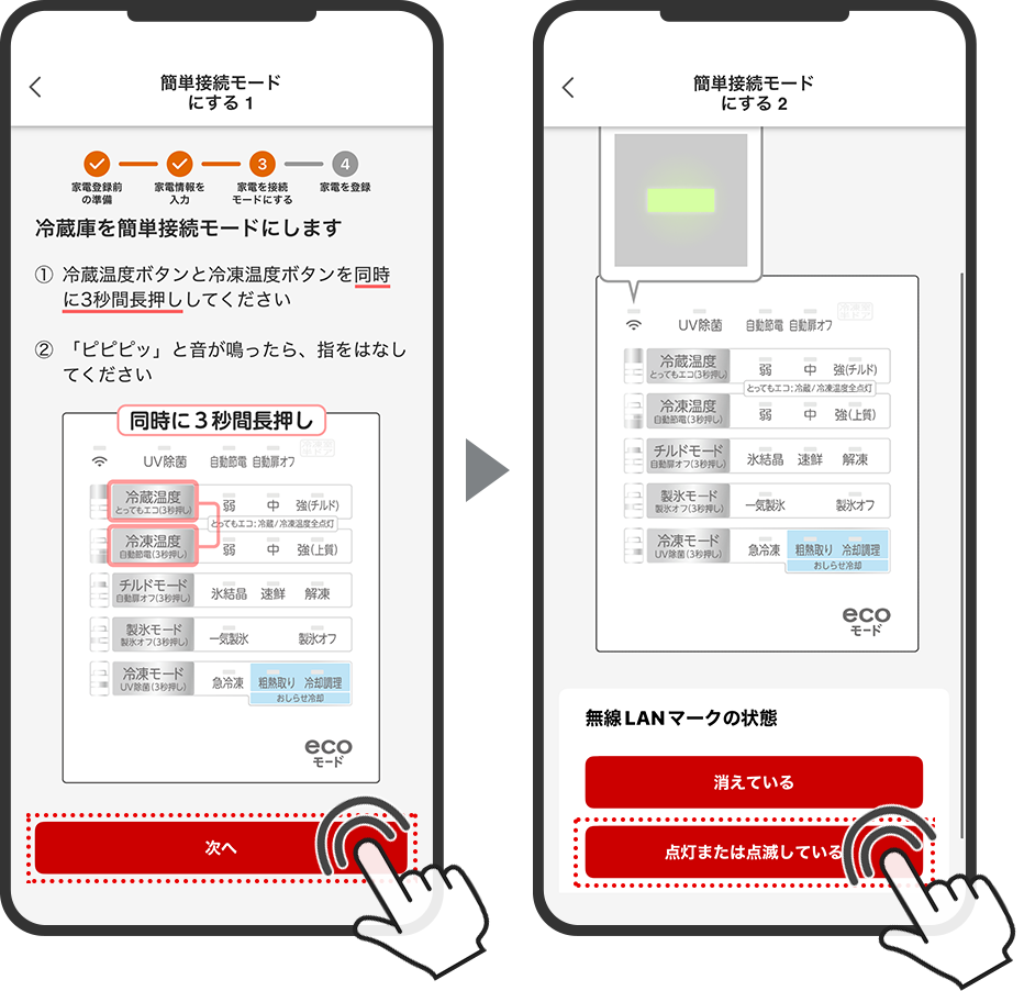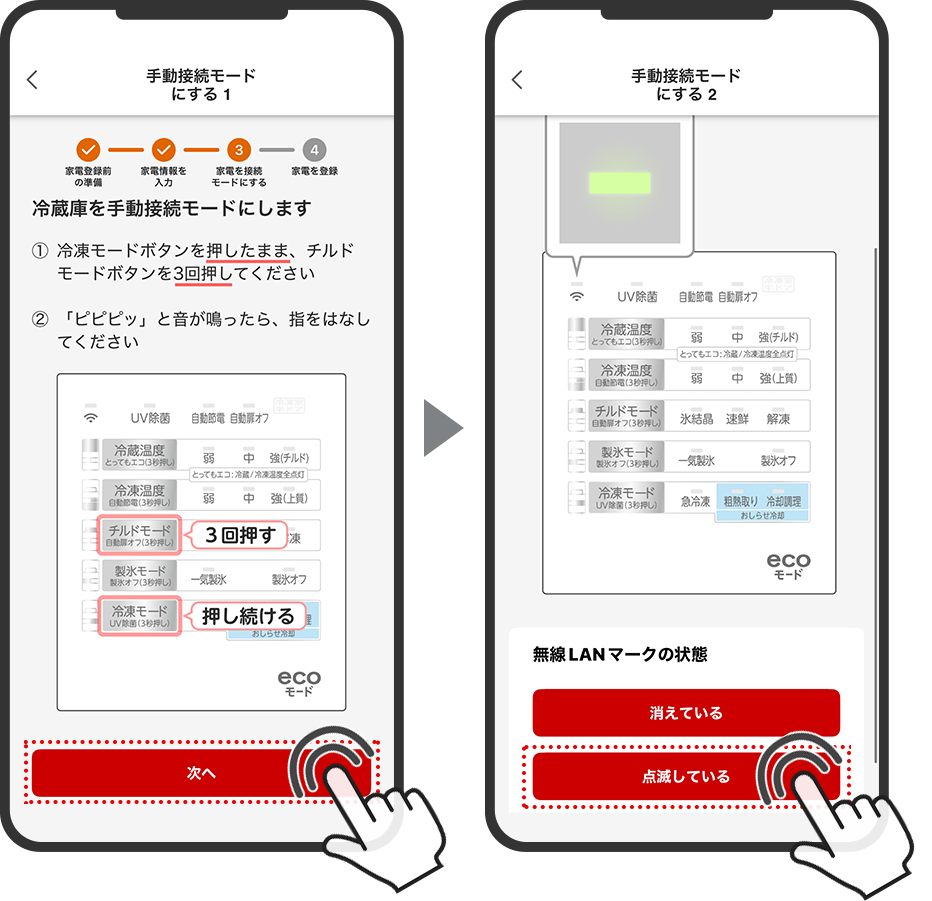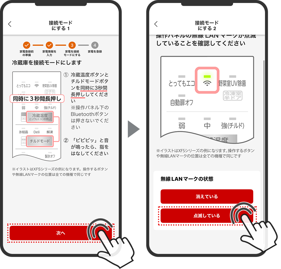 - 5操作パネルを操作して冷蔵庫を接続モードにする