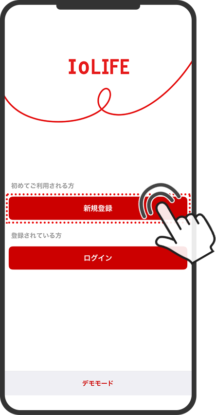 - 2「IoLIFE」アプリを起動して「新規登録」をタップ