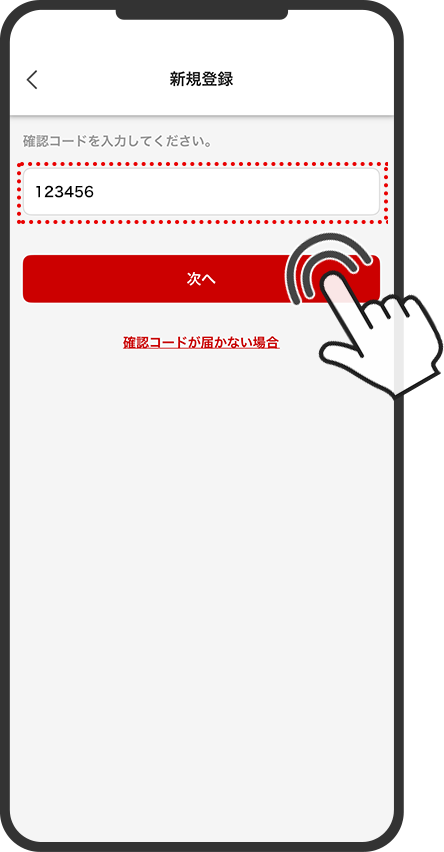 このメールに記載された「確認コード」(6桁の数字)を入力し「次へ」をタップ