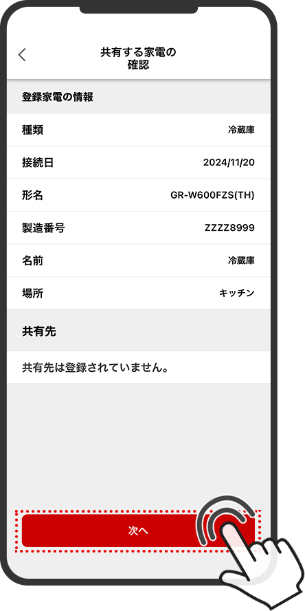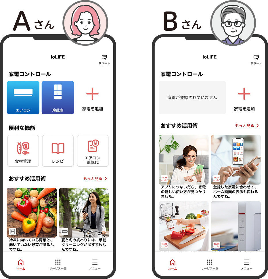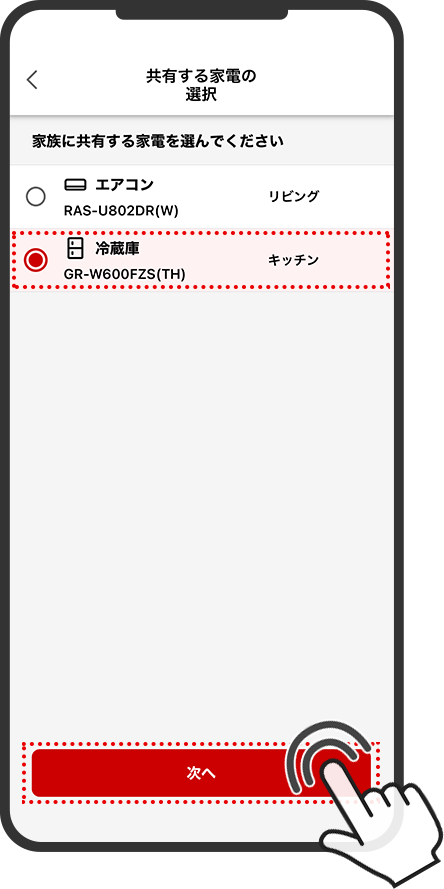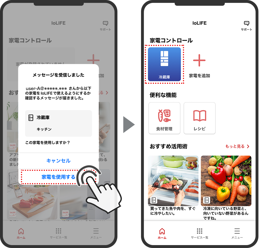 のIoLIFEアプリを操作して、Bさんに冷蔵庫を“共有”します。