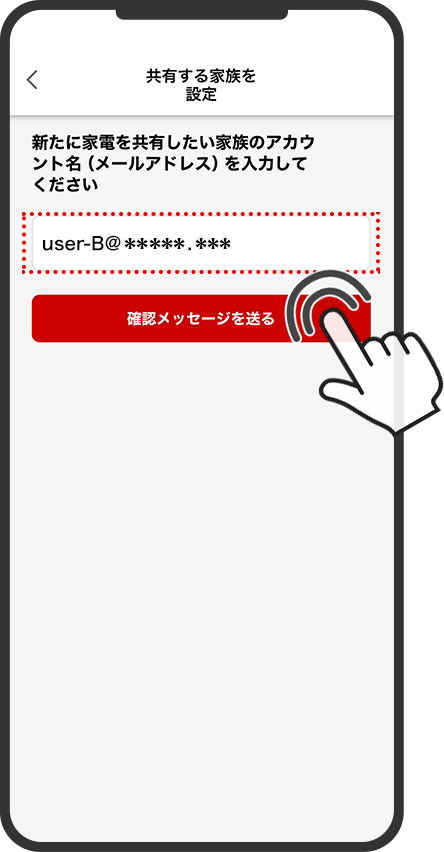 - 5共有する相手のログインID(メールアドレス)を入力して「確認メッセージを送る」をタップ