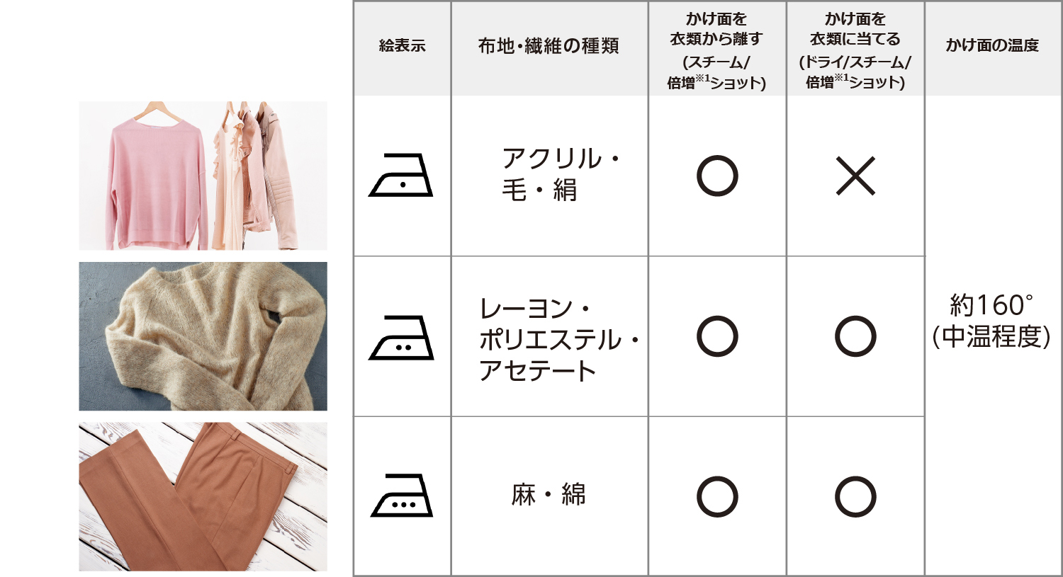 勢い良くたっぷりのスチームを噴射。ガンコなシワにもしっかりとスチームが浸透。引っ張りながらかけにくい襟や裾にも倍増※2ショットがおすすめです。