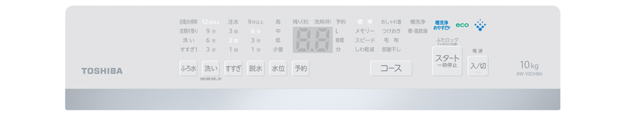 室温・水温、水道水圧、設置・排水条件、衣類の量や種類、衣類の片寄り、風呂水の使用などにより、使用水量・消費電力量・運転時間が増減します。