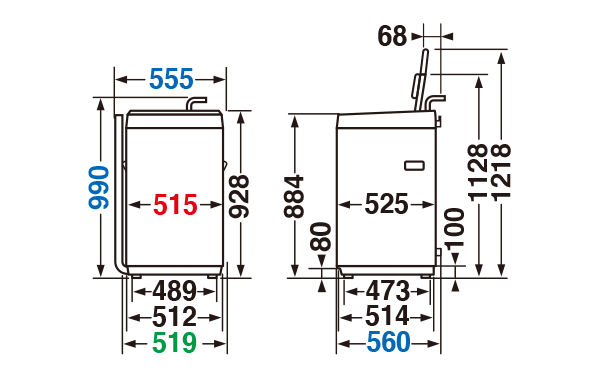 | 総外形寸法/質量 (幅×奥行×高さ) ●給・排水ホースを含む | 555×560×990mm 約33kg | |