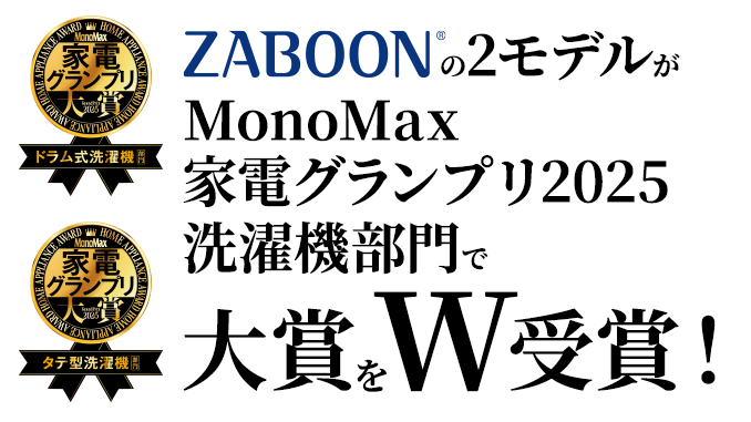TW-127XP5とAW-10DPB5がMonoMax家電グランプリ2025洗濯機部門で大賞をW受賞! -