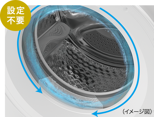 外槽前カバーの裏側、ドラム槽の外側、外槽の内側を、きれいな水をためて自動でお掃除。