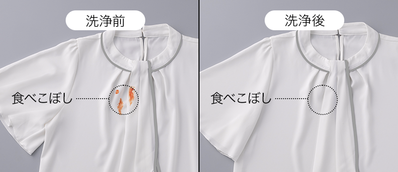 エリ元や袖口の皮脂汚れを、冷たい水でもキレイに落とせる。