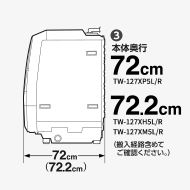 本体奥行 | 72cm(TW-127XP5L/R) 72.2cm(TW-127XH5L/R、TW-127XM5L/R) |