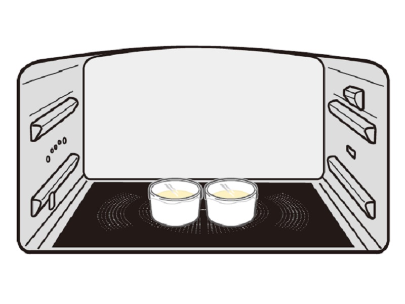 *お使いになる容器の材質や大きさ、材料などにより固まり具合が変わる場合があります。固まらない場合は、庫内中央に置いて、延長または手動のレンジ200Wで様子を見ながら加熱してください。