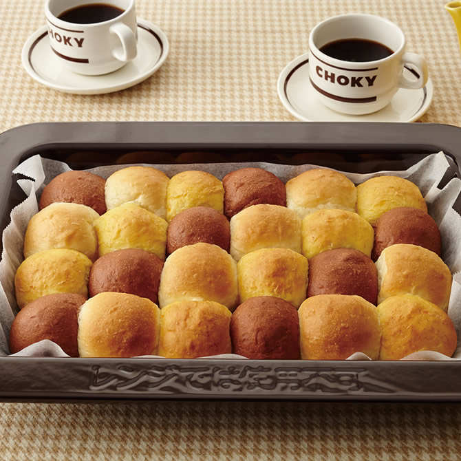 丸パンの作りかた①~⑦を参照して、3種類の生地を作る。