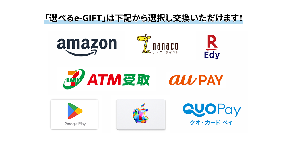 - ※ 選べるe-GIFTの換金はできません。ご応募の権利を第三者に譲渡することはできません。