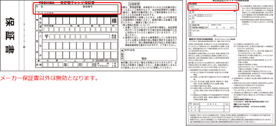 - メーカー保証書は、形名・製造番号表記のあるものをご用意ください。