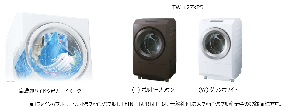 「高濃縮ワイドシャワー」と新ヒートポンプユニットで運転時間がさらに短縮した「TW-127XH5」を10月より発売します。「ウルトラファインバブル洗浄EX」を新搭載し、衣類の黄ばみと黒ずみを防ぎ、洗濯槽への汚れ付着を抑制する「バブルdeメンテ」でお手入れの手間を軽減します※6。