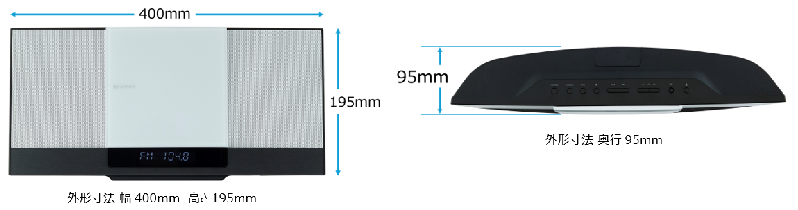 | 幅 400 × 高さ 195 × 奥行 95mm (突起物含む) | ||