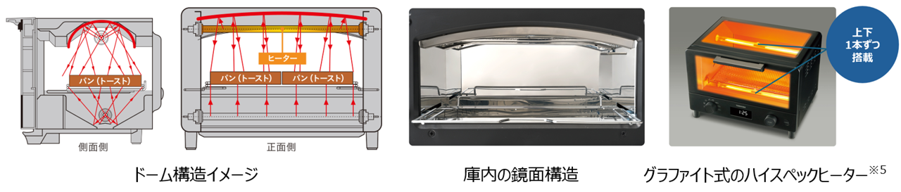※2 2026年3月現在。国内家庭用オーブントースターにおいて、庫内前後左右ドーム形状を採用。