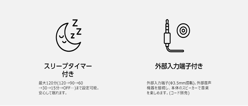 | 入出力端子 | 外部入力:φ3.5mmステレオミニジャック ヘッドホン出力:φ3.5mmステレオミニジャック | ||