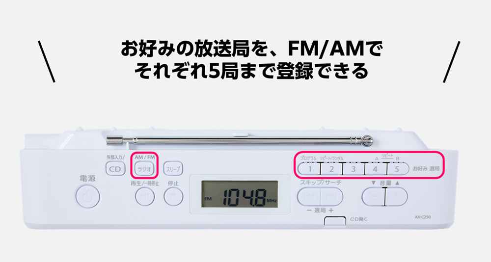 お好み選局ボタンでラジオ選局もかんたん