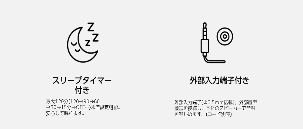 | 入出力端子 | 外部入力:φ3.5mmステレオミニジャック ヘッドホン出力:φ3.5mmステレオミニジャック | ||