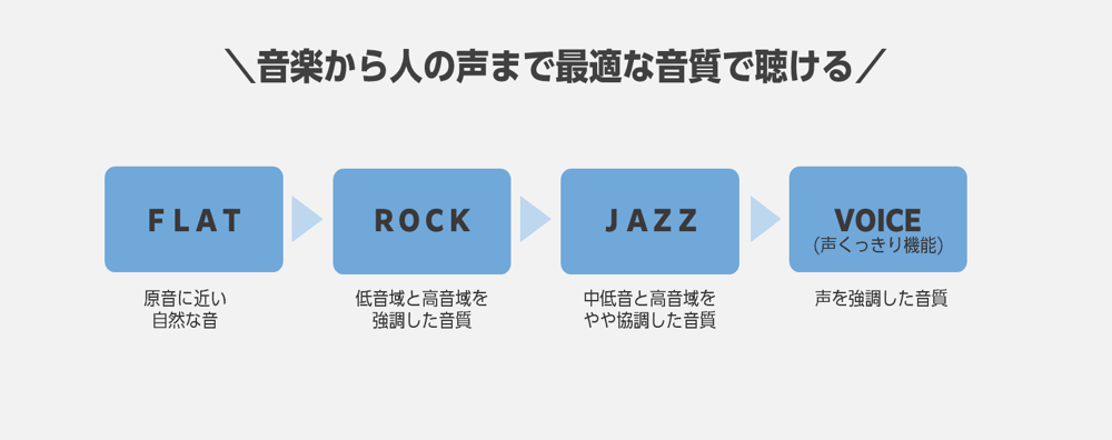 4種類の音質切替で曲に合わせた最適な音質をお楽しみいただけます。