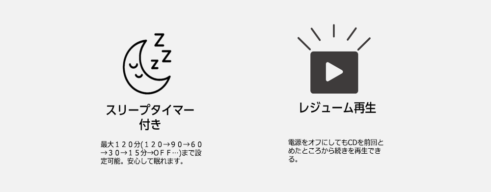 | 電池持続時間* | 東芝アルカリ乾電池単3×6本使用時 ラジオ受信時:約16時間 CD再生時:約3時間 | ||