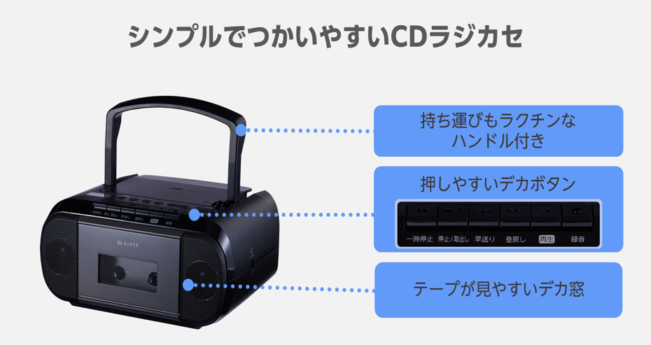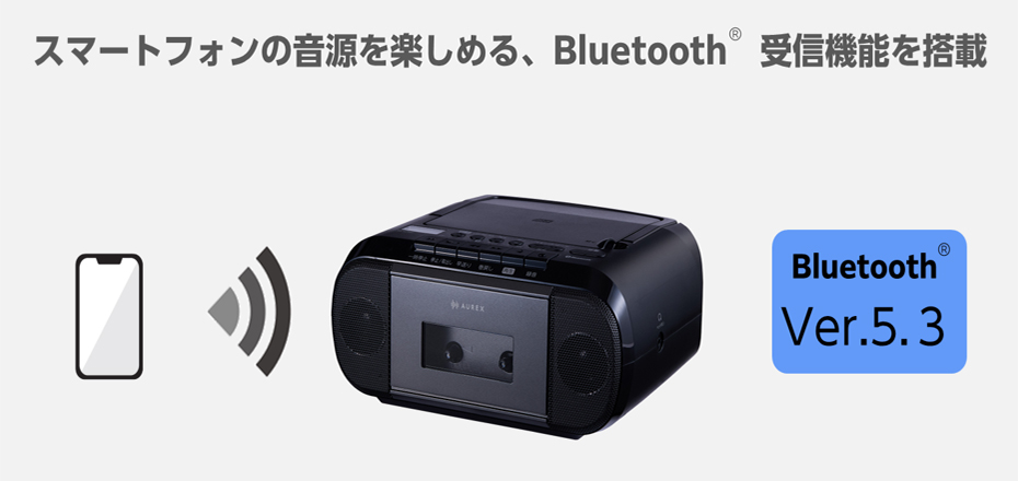 密閉型高磁力スピーカーとBluetooth®受信機能を搭載した、高音質ミニCDラジカセ