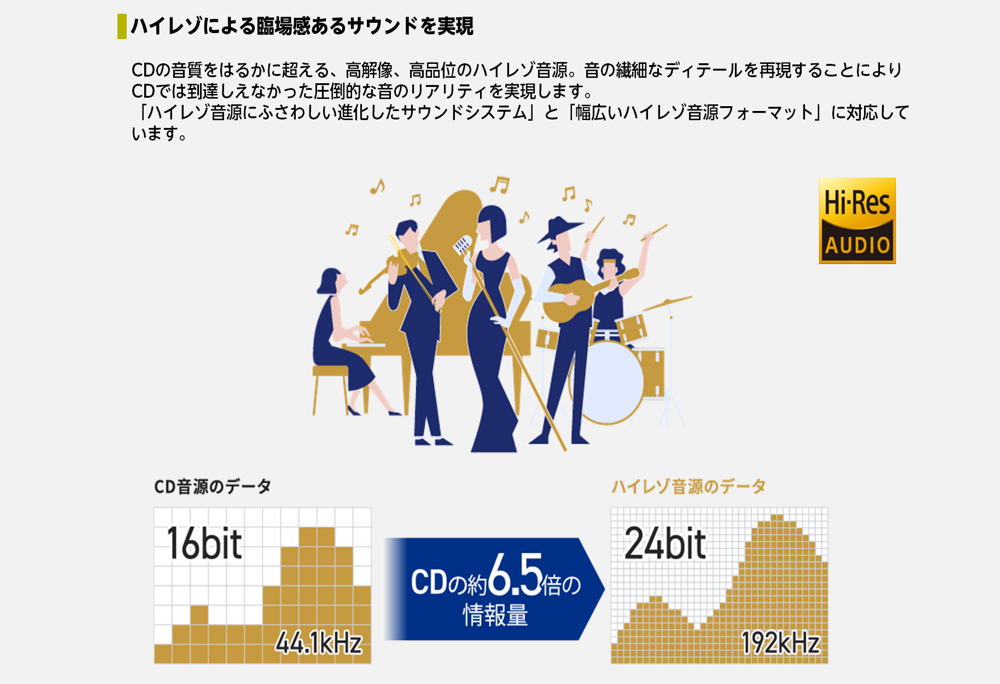 ※東芝エルイートレーディング株式会社はハイレゾ普及に向け、ハイレゾモデルには、日本オーディオ協会が推奨するハイレゾロゴを冠し推進しています。ロゴは登録商標です。
