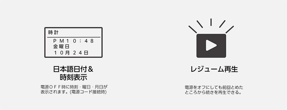 USBメモリー部 | 再生形式 | MP3(MPEG-1 Audio Layer3(~192kbps))/FLAC/WAV | |