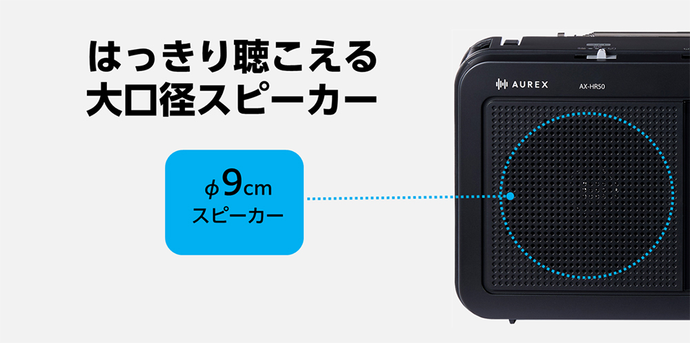 φ9cmスピーカー搭載。屋外でもはっきり聴こえます。