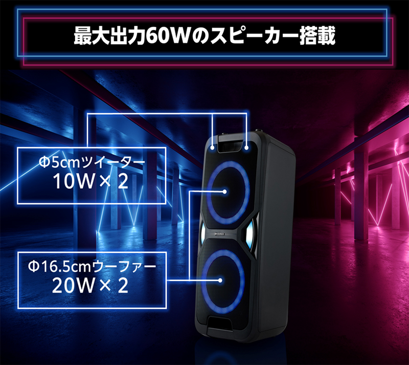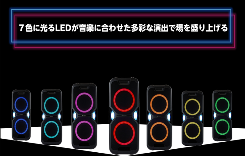 音楽に合わせた多彩なLED演出で場を盛り上げる、パーティースピーカー