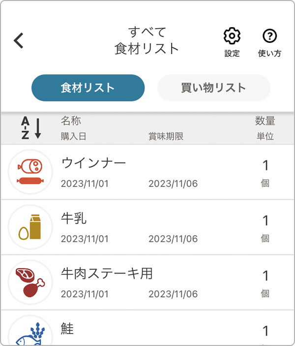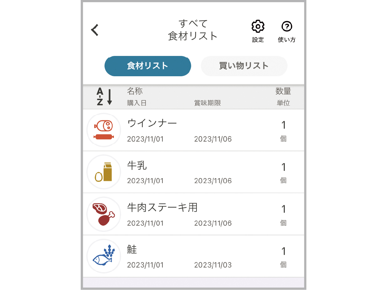 冷蔵庫に入っている食材をリスト化して管理。買い物リストとあわせて使えば、ムダなくお買い物できます。